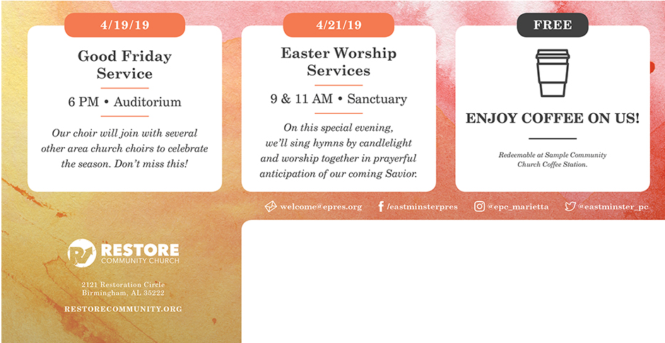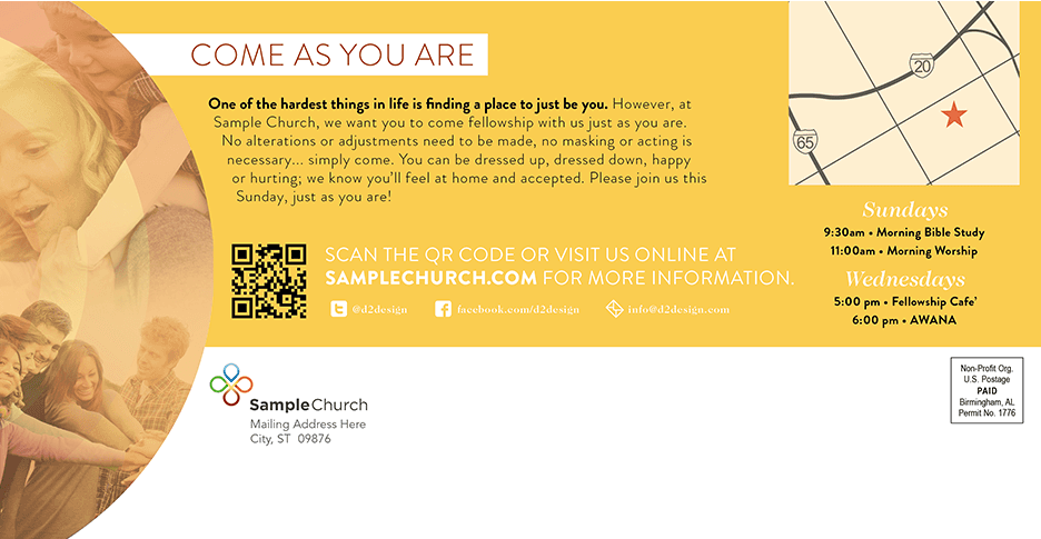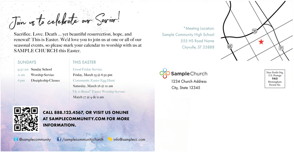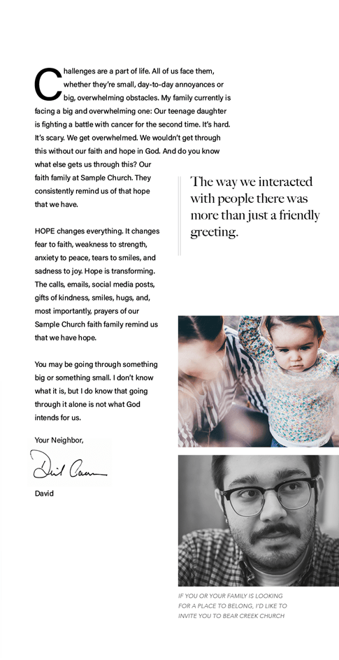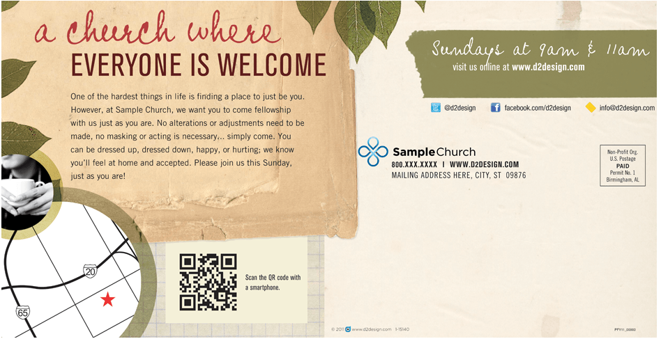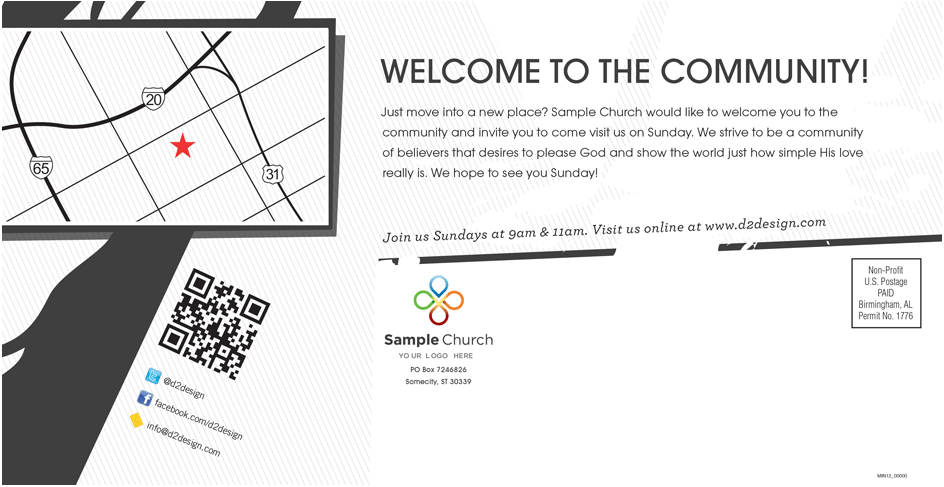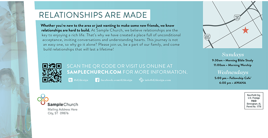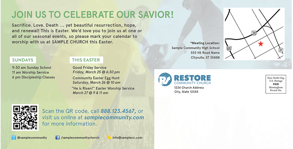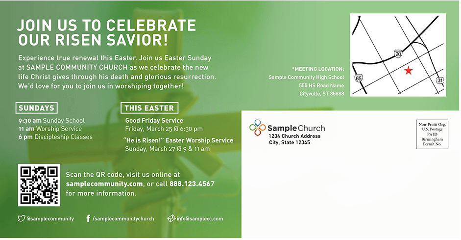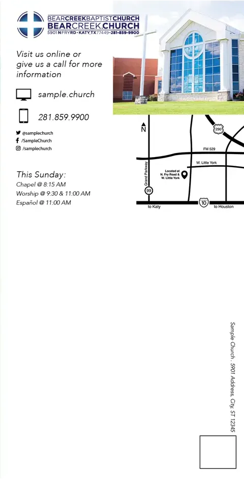 We want your card to reflect your church and feel personal. With most designs, we can accommodate reasonable requests for image changes, text color changes, and other design tweaks. Some customization requests may incur additional fees.