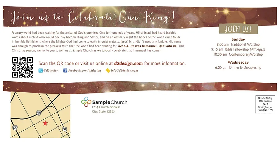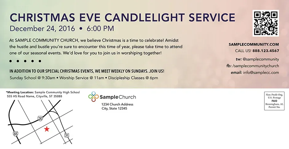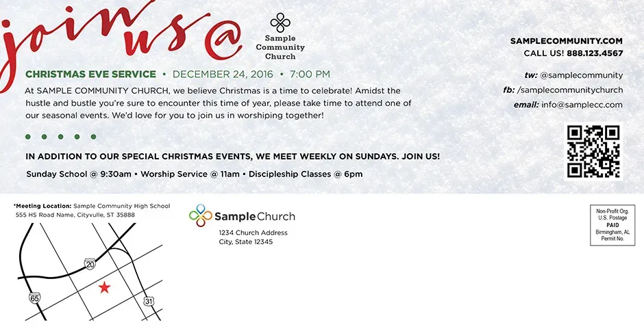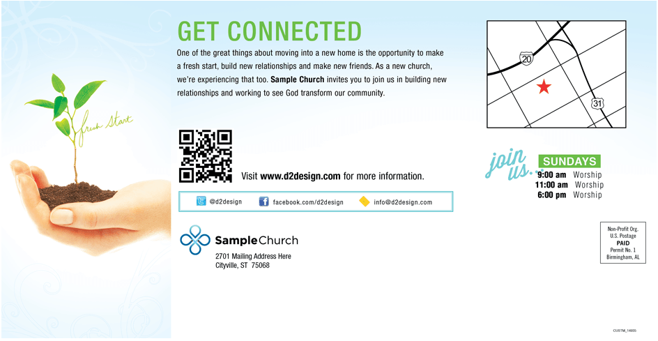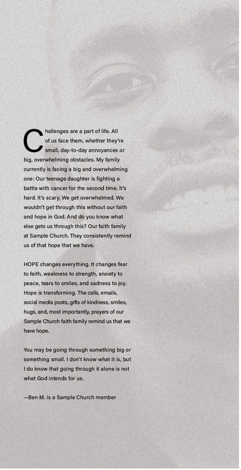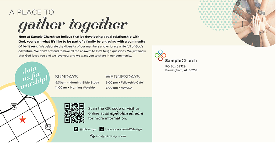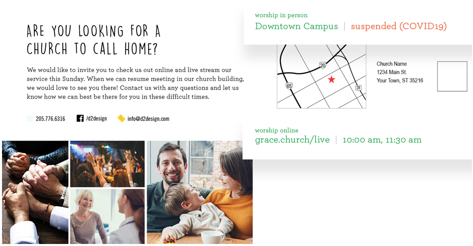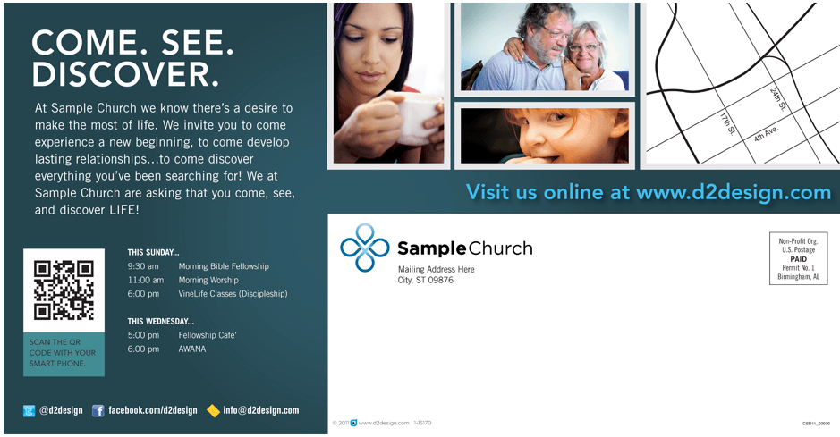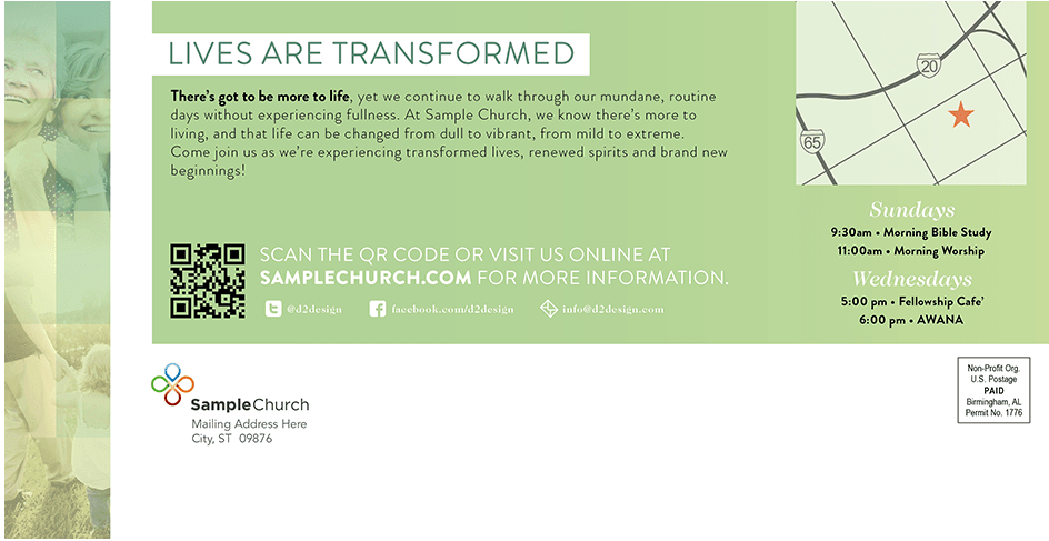 We want your card to reflect your church and feel personal. With most designs, we can accommodate reasonable requests for image changes, text color changes, and other design tweaks. Some customization requests may incur additional fees.