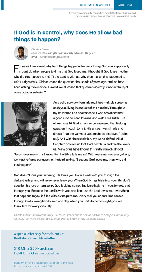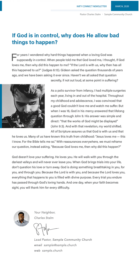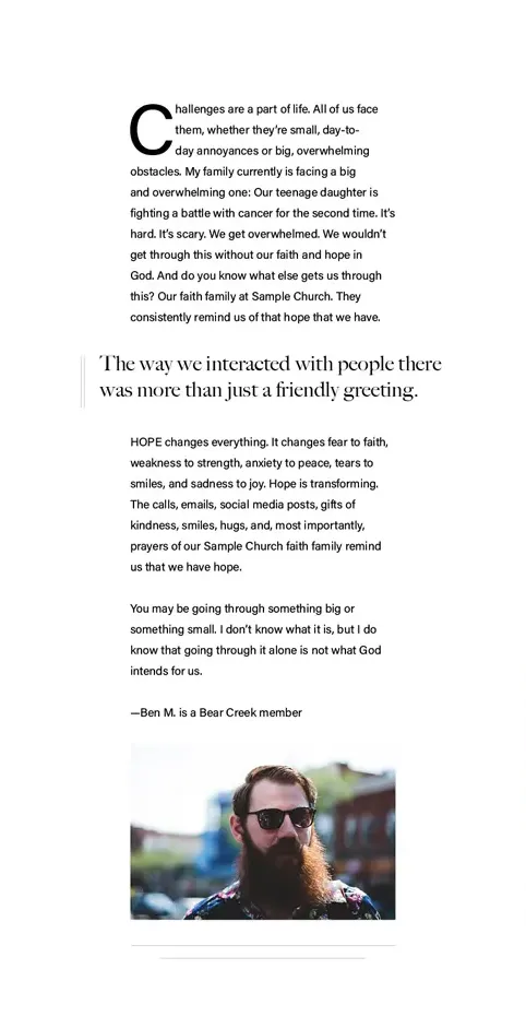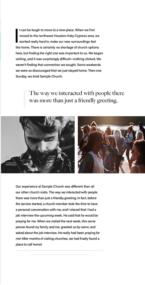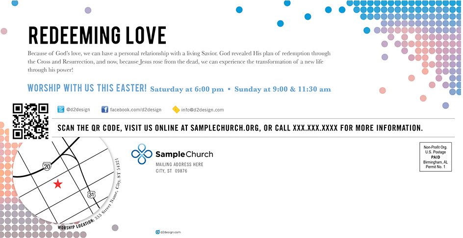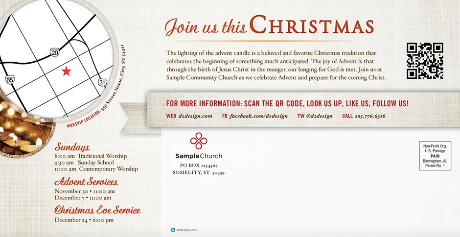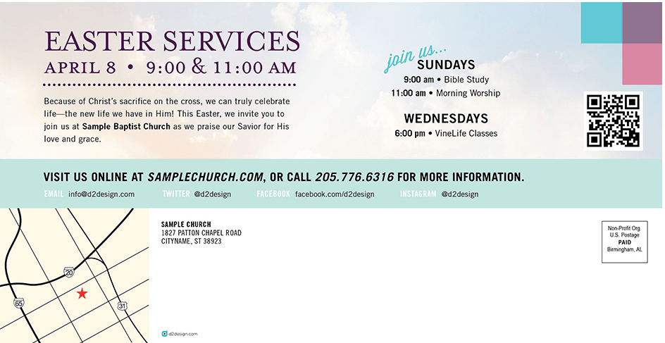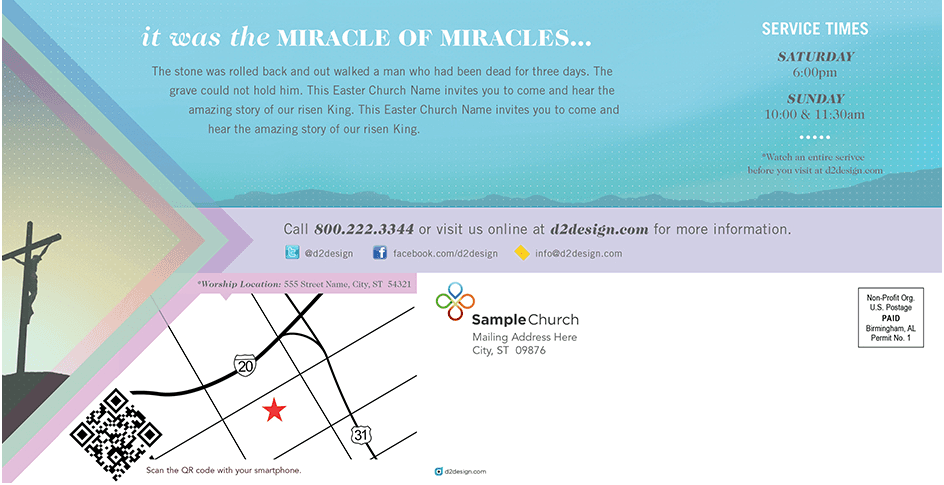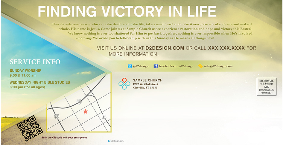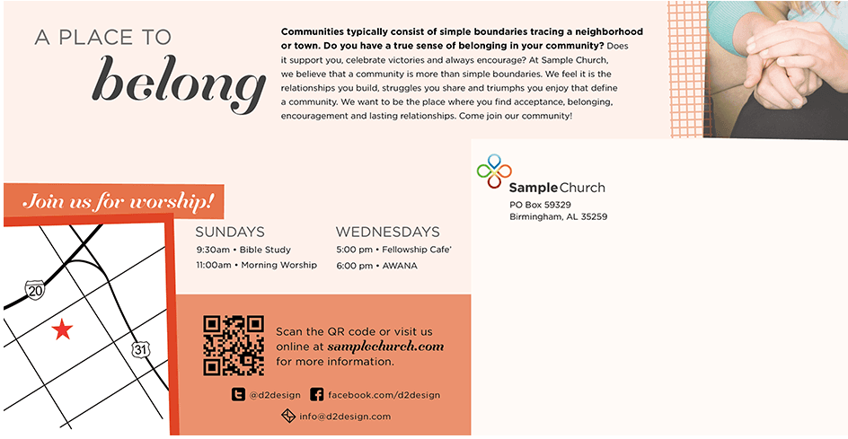 We want your card to reflect your church and feel personal. With most designs, we can accommodate reasonable requests for image changes, text color changes, and other design tweaks. Some customization requests may incur additional fees.